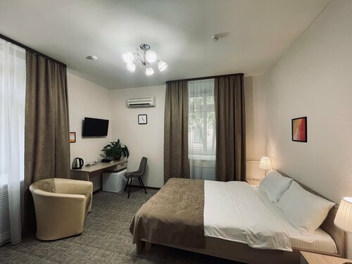 Отель «Визит» находится в центре города, недалеко от вокзала и исторической части. В номерах есть двухспальная кровать, рабочая зона, холодильник, кондиционер, телевизор, фен, халат, тапочки, утюг, гладильная доска, обогреватель. Завтрак приносят в номер, есть пять вариантов меню. На территории отеля есть бесплатная парковка и Wi-Fi. Стойка регистрации работает круглосуточно. В отеле есть бизнес-центр с принтером и возможностью сканирования и ксерокопирования, камера хранения, у администратора есть сейф.