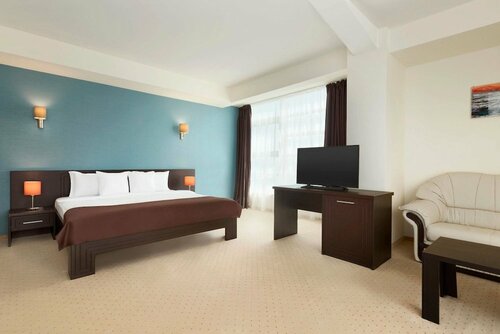 Очень серьёзный минус: окна номеров на северной стороне гостиницы выходят на парк отдыха с аттракционами, который работает всю ночь, начиная с вечера. Очень шумно для сна.