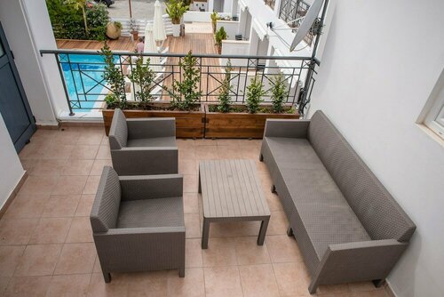 Пешком далеко от моря.Нужна машина.У нас был 2эт. Номер с 2 спальнями и туалетом на каждом этаже.Слышимость отличная и с улицы ,и через стенку.Наш вход был напротив небольшого бассейна.Шумно-понятно,но запах хлорки сильный.Купаться и есть-надо выезжать из комплекса.