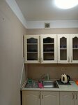 Плита и микроволновка не предусмотрены. Посуды для готовки нет. В шкафу нашли дешёвый чай и растворимый кофе (несколько пакетиков).