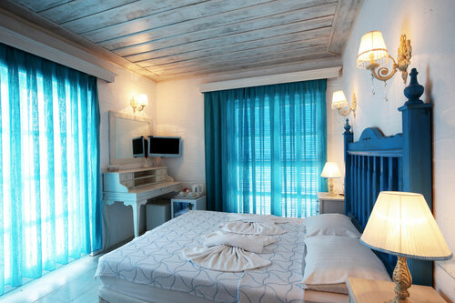 Мы в этом отеле не жили, только пользовались его пляжем и рестораном. Это лучшее место как на полуострове, так и вообще на побережье Турции, прозрачная вода, хорошо оборудованный пляж, вкусная еда, приятная музыка, вежливые сотрудники. Нам было очень хорошо, жили в 20 минутах езды на машине и приезжали только сюда. Если позволяет бюджет, заселяйтесь :-)