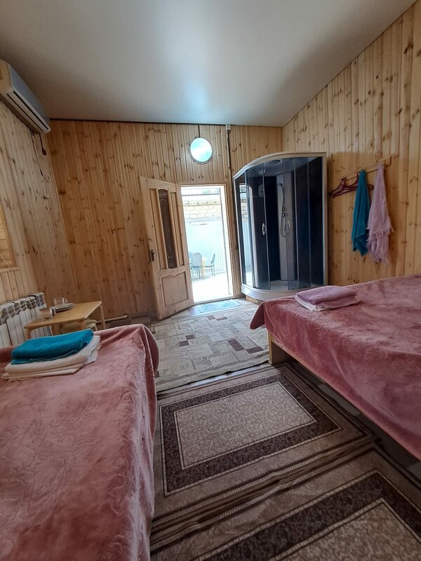 Во первых они себя называют хостелом, а не гостиница. Туалет не в номере, а общий на улице ( не как заявлено в описании) , в туалете кран полусломаный. В номере кровати и душевая кабинка все не первой свежести, с водой горячей тоже проблема. Холодильник в номере, но наверное не размораживался с момента начала сезона. Уборку как номера, так и туалета за неделю ни кто не убирал. Кухня есть за зданием, не большая пристройка под навесом из неё вход в номера и туалет. Мусор тоже ни кто не выносит, все сами должны делать. Есть не большой мангал и тут же место для курения. Кондиционер есть в номере. Парковки как таковой нет, разрешат поставить между домами, рядом с кафе, максимум одно место, и сами обольют машину остатками жидкости какой-то. У них принято что не до пьют из чашек выплескивают на улицу, если стоит машина будут на её выплескивать, нам всю машину залили, не сразу заметили. Через дорогу есть платная парковка 25 р час. До моря 200 метров это правда, море хорошее, но местами при входе в море есть камни. А так чисто бюджетных вариант, переночевать.