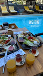 Отель в целом хороший, подходит, чтобы переночевать пару ночей. Ресепшен очень атмосферный, есть бассейн и зона для отдыха. Номера не большие, уставшие, но полотенца и постельное бельё приятные, белые. В номере есть холодильник, хороший кондиционер, телевизор. У нас был номер с видом на море и бассейн. Завтрак сытный: 3 вида сыра, колбаса, жареные сосиски, картофель фри, вареные яйца, бурек, помидоры и огурцы, зелень, несколько видов варенья, оливки и фрукты. Чай, соки, молоко.