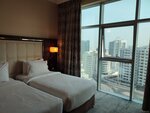 Приехали в отель в 10:00, заселение стандартно в 14:00, но на ресепшене нам сразу предложили заселиться в номер нашей категории на 2 этаже. Большой плюс, чтобы не ждать 4 часа и можно сразу после перелета заселиться, принять душ. Но мы хотели номер повыше, поэтому все равно пошли гулять до 14:00 и нас заселили в номер на 7 этаже. Ставим плюс за возможность заселиться сразу, потому что для семей с маленькими детьми или старшему поколению это будет очень важно. А если вы готовы подождать, ваши вещи заберут под охрану, и вы сможете сходить пока оформить симку и поесть, ведь УЧТИТЕ, что завтрак в день заезда не включен, если у вас ночной-утренний прилет. При заезде сразу нужно оплатить тур налог 120 дирхам, депозит не берут.