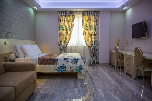 Здесь созданы все условия для комфортного проживания — есть кондиционер, телевизор, фен, сейф, мини-бар. Уборка — по запросу.