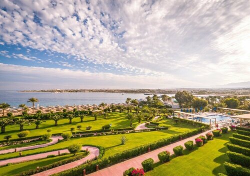 Были в этом отеле в середине сентября 2025г, на 11 ночей. Что могу сказать, отель отличный, для тех, кому не нужна активная тусовка. 80% туристов, это европейцы 45 лет и выше. Детей почти нет, хотя и бассейн, детские площадки и всякие развлечения для них имеются. Мы жили в основном корпусе, в номере. Де люкс, на 4 этаже. Уборка в номере нормальная, воду, газировки, добавляли по мере использования. Из средств по уходу за телом не было геля для душа и кондиционера для волос, что очень странно. Гель для душа появился день на пятый, кондиционера так и не было. В номере есть махровые халаты, но не было одноразовых тапочек. Пришлось несколько раз попросить, чтобы они всё же появились. Номер рекомендовать не буду, хотя в принципе я всем довольна, вид прекрасный на бассейн с водопадом, на море и горы, но на пятый день нашего прибытия, на пустыре началась стройка и, конечно, шум и ужасная пыль, которая вся шла на корпуса 16+. Шум нас не беспокоил, так как мы были с утра до вечера на море, а вот пыль, радости много не доставила. Поэтому при выборе номера, учитывайте этот момент. Питание. Очень вкусно. На завтрак всегда свежие соки из апельсина, манго и агавы. Нет, конечно, такого ассортимента как в Турции, но голодным точно не останетесь. Каждый день в меню мясо( говядина, баранина), птица (курица, индейка), рыба, несколько раз давали морепродукты. Мы были в сезон манго, поэтому его мы ели каждый день. Сладкий стол , огромное количество пирожных, восточных сладостей. Из алкоголя мы брали только белое сухое вино. Раз в три дня можно записаться в Греческий ресторан. Его я хочу отметить отдельно. Еда превосходная, в основном морепродукты, но есть и мясо, и птица. Всё очень вкусно. Обслуживание замечательное. Официанты и администратор, говорят по-русски, что делает ваше посещение более комфортным.