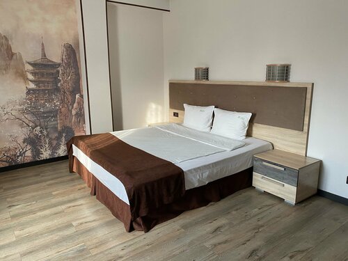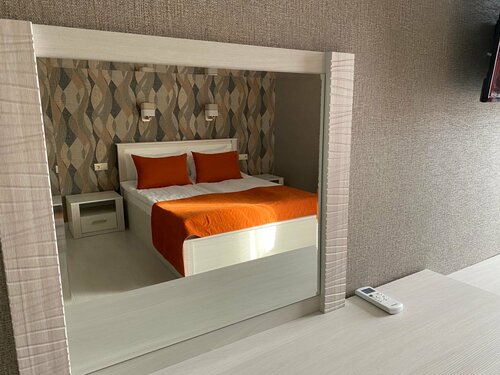 Отель Ника расположен в новом микрорайоне города Ессентуки, в 15 минутах езды на такси от курортной зоны и железнодорожного вокзала. Клиентоориентированность в этой гостинице полносью отсутствует(( Бронировали номер в Нике через приложение Отелло, по предоплате за три месяца до заезда. При вьезде нам был предоставлен дешевый номер, не соответствующий забронированному, на рецепшен сказали, к нашему удивлению, что остальные номера уже все разобрали, остался только этот номер( На наше возмущение, каким таким образом оплаченный забронированный за три месяца номер мог быть кому то отдан другому, аналогичный номер был все таки предоставлен. Окна из номеров гостиницы выходят на две стороны, с видами на двор с автостоянкой перед центральным входом, и двор с автостоянкой с обратной стороны. Ремонт в номерном фонде старый, близкий к совдеповскому, межкомнатные двери провисшие, плохо закрывающиеся. В туалетной комнате течь канализации. В коридоре установлен общий кулер для посетителей и гладильная доска с утюгом, только подключены к неработающим розеткам, кулером воспользоваться не сможете(, чтобы погладить одежду, пройдите с гладильной доской половину коридора к работающей розетке)) Добил шведский завтрак этой гостиницы, включённый в счёт номера, который проходит в комнате приема пищи на первом этаже с 07:00 до 10:00. Пришли на завтрак к 07:40, осталась только овсяная каша, два кусочка отлёта, четыре сосиски, семь фаршированных блинов, обычного хлеба и никаких нарезок уже не было ((( Тарелки остались только глубокие, ножи отсутствовали( Из напитков только быстрорастворимые кофе и чай( После нас продолжали приходить посетители, к 08:00 из еды уже не осталось ничего(, клиенты Отеля продолжали прибывыть, до окончания завтрака оставалось ещё два часа!( В это время кухарки/официанты мило беседовали на рецепшен с администратором гостиницы, не предпринимая никаких действий по пополнению еды и столовых принадлежностей(( Если Отель не может организовать шведский стол, то организуйте каждому клиенту блюдо по предзаказу, зачем позориться, кормить менее половины посетителей только четырьмя наименованием блюд, оставляя остальных без завтрака?(( На следующий день на завтрак не пошли, не было желания чувствовать себя быдлом! Убирают номера ежедневно, только выбрасывая мусор из урн) Из плюсов: вай фай бесплатный, свет есть, холодильник чайник и телевизор работают) Вода холодная и горячая с хорошим напором в любое время суток. Матрас на кровати средней жесткости не промятый.