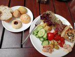Прожили 7 ночей, на 2-м этаже. Номера маленькие, зашарканные. Есть чайник, холодильник, сплит-система. Смеситель в раковине - отдельная тема, его не возможно открыть! Уборка-ежедневно (!) У нас был включен только завтрак (на цокольном этаже). На завтрак-овощи, два вида колбасы и пять сыров. За неделю один раз были сосиски, яичница (шушука), печеные овощи, печёный картофель - с голоду не умрёшь, но как то скудно. Огромный плюс - расположение отеля и вежливый, услужливый персонал! На второй день перестала работать сплит-система (быстро наладили, после обращения на рецепшн; через 4 дня сейф перестал открываться - а там паспорта, деньги. Его вскрыли только через сутки!)