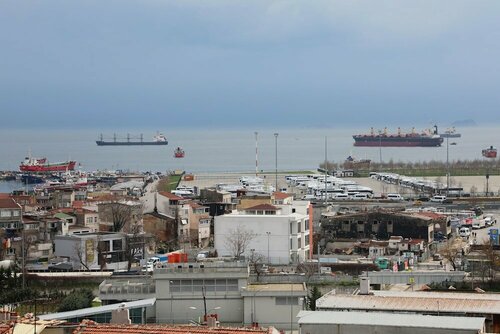 Вид на море есть, но там что-то вроде пром зоны и далее мор порт.
