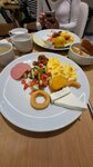 Завтрак нормальный, единственное, что было удивительным для меня, что нет натурального йогурта. Покупала себе на завтрак рядом в магазине чудесный турецкий густой йогурт.) Выбор достаточно большой, горячие блюда, овощи, салатные листья, выпечка, сыры, молоко, сухие хлопья. Вкусный чай, кофе-автомат.