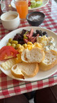 На завтрак омлет и варенные яйца, иногда сосиски. Остальное это различные мезе, сыры. Фрукты по сезону, хорошие. Местная выпечка и десерты. Вид с террасы ничем не примечательный, но и не плохой. Если хотите узнать, что такое шикарный вид, сходите в Гламур руфтоп.