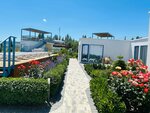 Отель «Санторини» предлагает бесплатный Wi-Fi и парковку. Возможно размещение с домашними животными (вес собаки — до 10 кг). В отеле есть номера для некурящих, предусмотрена звукоизоляция. Гости могут воспользоваться террасой для загара, шезлонгами и пляжными креслами. Предоставляются гладильные услуги и прачечная. Есть аптечка первой помощи. Отель имеет собственный песчаный пляж. Персонал вежливый и приветливый. Рядом находятся кофейни.