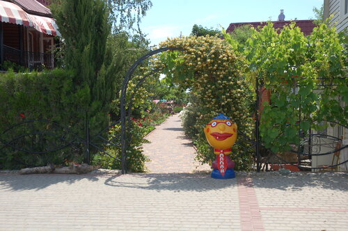 Хозяйка всегда следит,каждый день вижу ее на территории,👍кстати о территории☝️-много зелени,качели,настольный теннис,свои зонтики и шезлонги,магазин на территории кафе,что еще надо для кайфового отдыха.