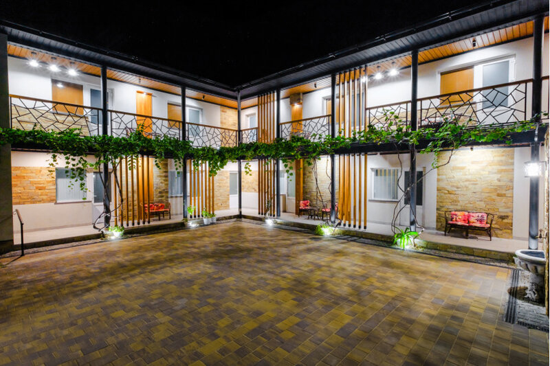 Прекрасный гостевой дом, в итальянском стиле. Хороший ремонт, чистота, персонал отзывчивый вежливый! Санузлы находятся на этажах (один на 2 номера) их убираю 2 раза в день, очень следят за чистотой, это поразило … расположение отличное 7 мин до моря, 5 мин до парка, 20 мин до набережной, 2 мин до супермаркета и 4 до рынка, через 5 домов кафе Кампари и их же кулинария ))) спасибо вам огромное за прекрасный отпуск ❤️