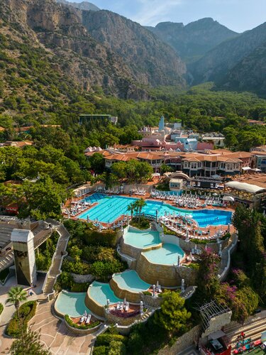 Территория отеля большая, для тех кто любит гулять - рай. Ни в Фетхие, ни на экскурсии не ездили. Еда, уборка номеров, сами номера, кондиционер, развлекательные программы, бары, рестораны, море, пляжи - никаких претензий нет, всё на пятёрку.