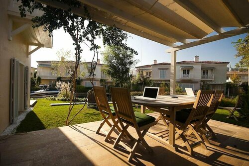 Прекрасное место. Очень красивый двор. Состоит из вилл. Вилла делится на четыре квартиры. Но ремонт желает лучшего. Обшарпанные стены. Уставшая мебель. Чайник без крышки. Кофе машину так и не принесли. А в велосипедах нам отказали, тк их 28 штук на 111 вилл) до пляжа минут 7-10. Пляж платный. Стоит 1800 лир. Плюс минус. Точно уже не помню. Море красивейшее. Марина для яхт- это услада для глаз.
