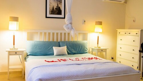 Отель максимум 2 звёзды микроволновки нет,утюга нет , убираються посредственно ,есть завтрак , кондиционер ,телевизор есть ,но работает 1 программа, но на 60 долларов он не тянет .