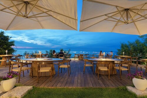 В гостинице есть ресторан, бар, тренажёрный зал, сауна, конференц-зал. Можно прогуляться по территории и в саду. И вы наверняка захотите отдохнуть у бассейна — он тут тоже есть. Причём крытый, открытый. Море тут близко — до него всего 114 м, поэтому легко можно планировать пляжный отдых. Есть возможность взять напрокат велосипед.