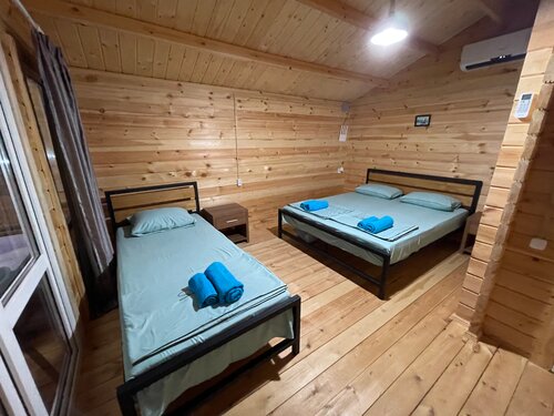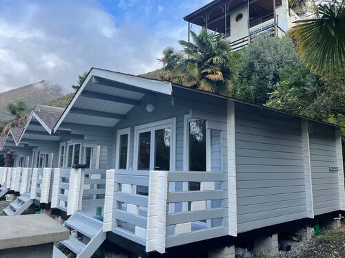 Нам с женой и 2 детьми данное место отдыха очень понравилось. Впервые приехали сюда в августе 2024 года. По началу, как нам казалось, были нюансы — близко ж/д, дорога, но через пару дней абсолютно к этому привыкли, и это не доставляло нам дискомфорта, поезда ходили утром и вечером, да, их было слышно, но это абсолютно не напрягало нас. Больше раздражал звук рычащих мотоциклов и машин в ночное время. Но это местные так хвастаются. )). После отдыха в этих домиках мы на 2 дня уехали в Сочи, куда катались до этого практически каждый год. И вот там нас ждало разочарование: абсолютно все улицы в бетоне, бетонные дома, набережная — жара, пляж полон людей, вечером не пройтись из-за духоты, пыли и жара от бетона, народу уйма. Очень пожалели, что последние 2 дня провели в Сочи, а не в Абхазии в этих домиках. В этом году решили уже безоговорочно снова поехать сюда. Хозяева очень доброжелательные, всегда на связи и всегда готовы помочь. Огромное спасибо Елене, Закану, их родителям. Будьте готовы к тому, что в Абхазии периодически отключают свет, но это изюминка этой страны. Да, не хватает кондиционера в момент отключения света, да, порой невозможно зарядить телефон, но выход всегда найдётся. Хотим пожелать этому месту процветания, в качестве пожелания хотелось бы, чтобы эти домики обрели генератор автономного питания. Но самый главный кайф в том, что у вас есть своя веранда, на которую можно выйти, попить вина, выкурить сигарету, насладиться горами на заднем фоне, и никто из соседей не будет мешать, потому что у каждого своя веранда. В Сочи теперь нам абсолютно не хочется, если в следующий раз получится выехать на море, то приедем сюда обязательно снова. Фотографии нашего домика без прикрас, как есть. Море рядом. Пляж хороший. Есть магазины и кафе. Попробуйте. Должно понравиться.