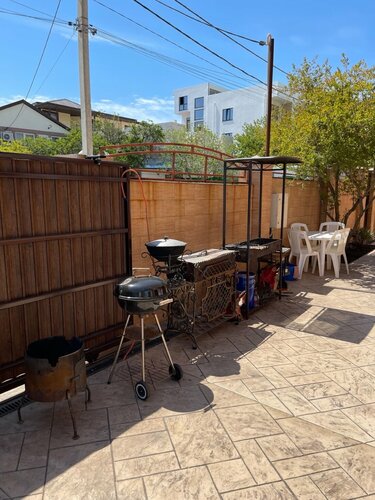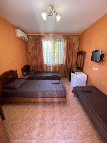 Территория красивая, чистая, условия в номере нормальные, администратор встретила хорошо, предоставила парковочное место. Но кухня очень маленькая на такое колчество номеров и неудобная, там трём человекам невозможно разминуться, без кондиционера. Просто истекали потом пока включены комфорки, даже вечером. Комод, занимающий целый угол с нерабочими ящиками. Еду приходилось носить на 3 этаж, есть в комнате, так как стульев за столиками не хватало, видимо отдыхающие растащили по комнатам. Но их можно понять. Например, в номере был туалетный столик, но полноценно им восользоваться не получалось, т.к. стула не было. Нам нужно было задержаться до пяти, мы объяснили, что нам ехать по приграничной зоне очень опасно ночью (мы из Курска). Хозяйка запросила за 5 часов как за половину суток, причём номер был не забронирован. К чести администратора, она вопрос решить попыталась.