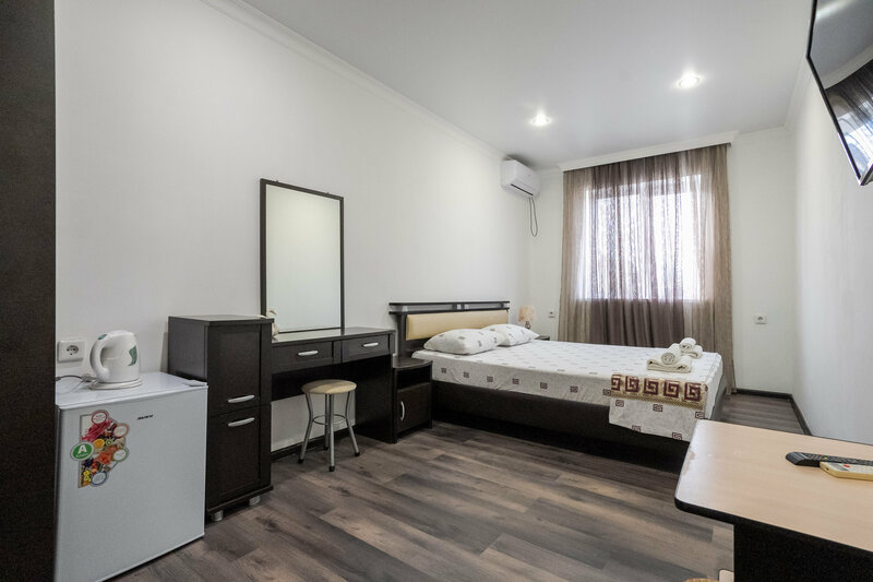 В номере — душевая, туалет,холодильник, кондиционер и чайник — всё продумано до мелочей, очень удобно!