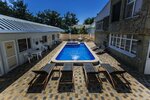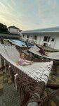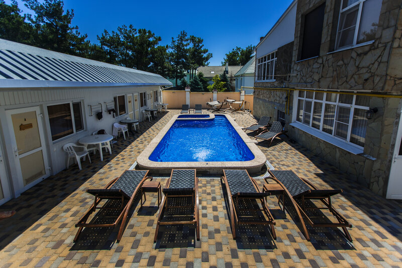 Непосредственно о гостевом доме. Территория небольшая, зона у бассейна уютная, много лежаков. Есть общая кухня. На счет мангальной зоны не уточнял. Ни кухней не пользовались, ни мангал не требовался - некогда было. Да и в номере хватало посуды и оснащения, чтобы утром-вечером перекусить.