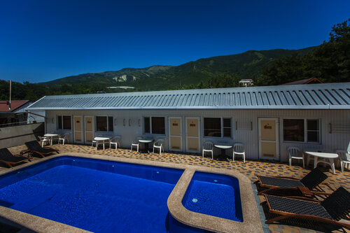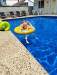 Наш номер стандарт находился прямо в двух метрах от бассейна. Рядом стол, стулья, сушилка для белья, тут же рядом лежаки и чуть поодаль даже есть пара гамаков. Это прям подкупило при выборе как номера, так и гостиницы в целом. Бассейн с подогревом. Даже иногда как-то там гидромассаж подключался. Ночью подсветка, в тишине и иногда при пении цикад - прям кайф поплавать. Работал бассейн до 21, но при необходимости можно было попросить оставить на подольше (но нам хватало и этого времени, чтобы освежиться).