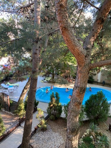 Территория отеля очень, просто Очень красивая и уютная. Есть зона мангала, бассейн, лежаки, баня. Утром - сосны в солнечных лучах просто восхитительны.