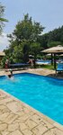 В самой гостинице не были. Но были на территории и в кафе. Находится при входе в заповедник. Территория красивая, зелёная. 2 бассейна. 1 глубокий и 1 детский. Чистые!!! Лежаки, не много, но я думаю хватает. Для гостей отеля, всё бесплатно. Но также можно просто прийти за деньги, что бы искупаться. Стоимость на неделе около 30лари/чел. В выходные 50лари.