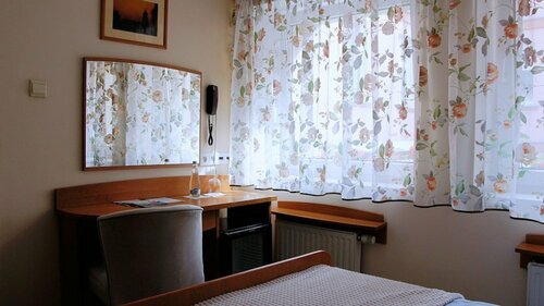Попали в отель случайно без бронирования (задержка в дороге из-за пробок), нашли отель по подсказкам навигатора, заселились легко, дежурная девушка любезно проводила до парковки недалеко от отеля... немного скромный номер, но переночевать можно, особенно с дороги. А вот завтрак помнится отличный был!