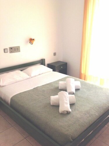 На первой линии, и очень близко к ключевым сервисам- транспорту, супермаркету, тавернами. Пляж начинается в 40 метрах на любой вкус от лягушатники до глубокого и открытого, да и никаких буйков и гидроциклов с прочими мешающими каталками. Номера большие и удобные, все есть. Очень доброжелательные хозяева.