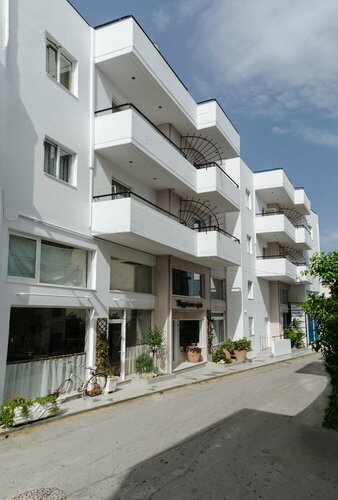 Жили в этих аппартаментах. Очень понравилось. Чисто, уютно, ненавязчиво. Убирались и меняли белье через день. Владельцы - греческая семья. Встретили нас свежевыжатым апельсиновым соком и сразу заселили в наш номер, несмотря на то, что было совсем утро. Всегда готовы помочь и выполнить любое пожелание. В номере есть все необходимое. В кухонном уголке вся необходимая посуда, чайник, кофеварка, плитка и духовой (простенький) шкаф. Средство для мытья посуды и губка тоже есть. А еще предоставляются очень добротные индивидуальные тапочки.