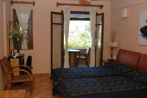 Окна выходят на фисташковую ферму, за которой море! Безумно красивая гостиница, все в зелени, даже завтрак-обед-ужин на улице в густом зеленом саду. Номера убирают чисто, персонал хорошо знает английский, пара горничных немного понимает русский. Единственный минус - до реально хорошего пляжа нужно ехать минут 20 на автобусе на другой конец острова. Пляж рядом с гостиницей достаточно унылый, не очень чистый и прямо рядом с проезжей частью.