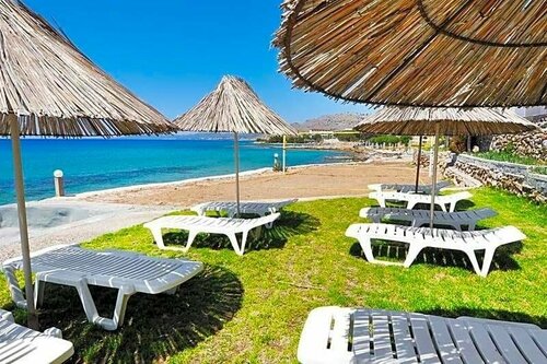 1. отель расположен на 1 береговой линии. При этом пляжа нет, так как весь берег это огромные камни и купаться нет возможности. У отеля есть пирс со ступеньками в море, но ступеньки нереально скользкие. Если есть маленькие дети можно идти направо в санрайс там нормальный пляж. Но с нашего отеля постоянно сливают канализацию, и когда идешь туда, постоянно воняет, между илизиумом и санрайсом. Если детей нет, идите налево приблизительно километр 10-15 мин пешком до CORALLI ресторан, там и пляж нормальный и вода реально чище чем в илизиуме или санрайсе мутной от канализации. 2. Отель позиционирует себя как с питанием все включено, НО есть эти полуфабрикаты после 2 дней отдыха глаза на них не смотрят. Столовая маленькая НО так, как еда отстой места всегда полно. Из фруктов арбуз и персик остальные фрукты из консервов, и это в Греции на южном ее острове. 3. Приехали в отель в 8 утра решили попить воды и ознакомится со столовой НО так, как нам не дали браслетов нас туда не пустили. Вернулись на рецепшен и сказали чтоб дали браслеты. На рецепшене жена хозяина вежливо послала, со словами, браслеты вам дадут после 12 часов. Мы спросили а как же попить, она пошла за барную стойку и налила водопроводной воды, которая настолько противная, что пить не возможно. Если хотите пить нормальную воду, покупайте ее в магазине. Покупали тур с семейной комнатой (family) на сайте анекса тура это 40м2, по факту 20 м2 на 2 взрослых, 2 детей. НЕ ДЕЛАЙТЕ НАШИХ ОШИБОК!!!