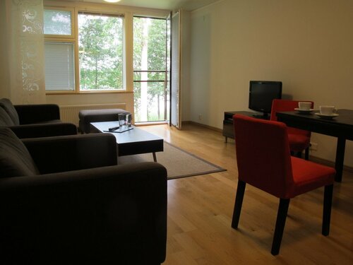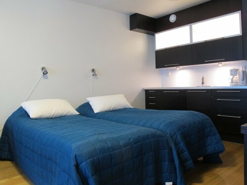 В описании заявлена кухня, но ее нет. Точнее нет плиты только микроволновка. Так приготовить ничего почти не удастся. А финские полуфабрикаты, как и готовая еда из кулинарии так себе на вкус. Ножей тоже нет. Завтрак, входящий в стоимость, не отличается свежестью. Были там с 30.12.18 по 02.01.19. На Новый год там очень мало постояльцев и сауна работает по одному часу (один для женщин с 18.00 до 19.00, и один для мужчин , 19.00 до 20.00). Если вы живёте не в главном корпусе до сауны (и соответственно от нее) придется идти по улице.