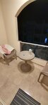 На балконе стол и стулья. На некоторых балконах есть плотные шторы, но не везде.