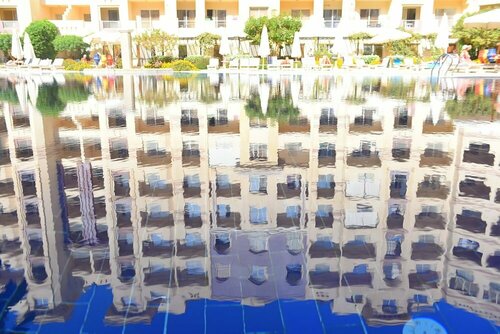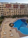 Внутри комплекса большой бассейн. Он без подогрева, поэтому в зимнее время там никто не купается. Хотя на лежаках загорают в первой половине дня, пока солнце заходит во внутренний двор.