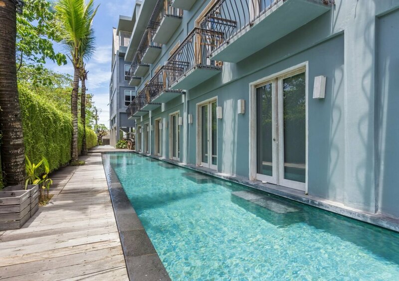 Бассейн мелкий 1 метр глубиной и расположен вдоль номеров