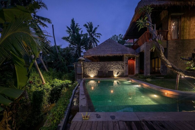 Плюсы: Отель находиться в 7 минутах от Убуду на транспорте. В тихом с покойном месте. Встретили как подобает для отличного отеля. Угостили прохладительными напитками. Номер оказался на удивления большой, со всем необходимым. Ванная заслуживает отдельного внимания. Создаётся незабываемая атмосфера , благодаря дневному свету, подающему с потолка в ванной комнате. Завтраки вкусные и большие. Скутеры выдают новые с полным баком. Вообщем это вилла, одна из лучших, что я встречал по такой цене на Бали.