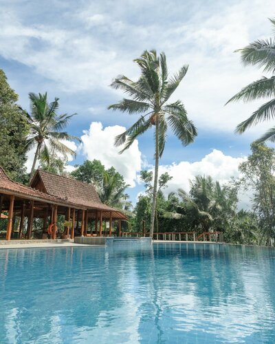 Совершенно случайно нашли этот отель и провели ночь перед восхождением на вулкан Иджен. От отеля до. Начала восхождения 30минут на байке. Отельный комплекс огромный и очень клевый, с находящимся на возвышенности инфинити бассейном с безумным видом на горы, с огромной территорией по которой можно погулять пофоткаться с терракотовыми фигурами, насладиться рисовыми полями и несколькими ресторанами. До ближайших деревень достаточно далеко, поэтому молитвы доносятся не особо громко но слышны)). Номерной фонд очень приятный, есть подешевле внизу у рисовых полей и подороже наверху с видом на горы.