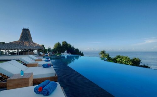 В гостинице есть ресторан, бар, тренажёрный зал, конференц-зал. Можно прогуляться по территории и в саду. И вы наверняка захотите отдохнуть у бассейна — он тут тоже есть. Причём открытый, переливной. Море тут близко — до него всего 256 м, поэтому легко можно планировать пляжный отдых.