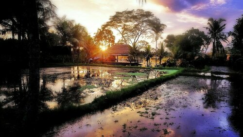 Хозяева действительно очень дружелюбные и очень приветливые, вид из Бунгало очень красивый, завтраки вегетарианские. (Боул с фруктами, омлет и банановый блинчик)