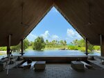 Поскольку отель часть природного комплекса, то дороги тут не заасфальтированы, а просто песок. Весь интерьер и экстерьер гармонично вписывается в окружающий ландшафт. У отеля потрясающий пляж, белоснежный пудровый песок, как на Мальдивах и он расположен всего в 4 метрах от бассейна. А сам бассейн буквально вмонтирован в пляж. То есть, бассейн и пляж и море представляют собой почти одно целое.