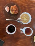 Завтрак не слишком порадовал. Каша рисовая была замечательная. Нарезанный сыр успел заветриться, а помидор порезали плесневелый. На моё замечание, что помидор с плесенью, повар никак не отреагировала, только переспросила: "А, да?" 😅 Блинчики как блинчики, нормальные. Ещё яйцо вкрутую разрезано и зачем-то помазано кетчупом. Стоит это 400 руб.