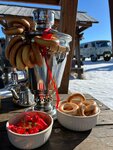 Отдыхали не в самый разгар сезона, в конце августа. База уютная, персонал очень приветливый и отзывчивый. Брали номер эконом, нам понравился: пахло в нём деревом, кровати удобные. Вид из нашего окна был на храм, пляж и Байкал — потрясающие закаты! Туалет и душ на улице, но тёплые, оборудованные, чистые. Туалетная бумага в достатке, урны постоянно убраны, поменяны. В душе горячая вода. Есть столовая, где можно заказать завтрак, обед или ужин (или всё вместе). Мы только завтрак один раз заказали. Есть оборудованная костровая зона, есть беседка от дождя, теннисный стол, прокат сапов. В столовой можно воспользоваться холодильником, налить кипятка...