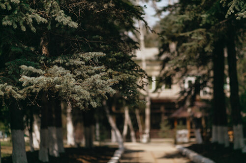 «Голубые Ели» — база отдыха на берегу реки Олха. Предлагается проживание в коттеджах или номерах, разрешено проживание с животными (вес питомца — не более 15 кг). Питание по системе «всё включено» с выбором блюд по меню. На территории есть парковка, площадка для пикника и мангальная зона. Для развлечений организуются дискотека и вечерняя программа, можно провести праздник. Доступны спортивные активности: настольный теннис, катание на лыжах и лошадях, футбол, баскетбол, бадминтон, йога. Работает прокат лыжного снаряжения, есть место для хранения лыж и сноубордов. Предоставляются услуги стирки белья и одежды, обслуживания номеров, работает круглосуточная стойка регистрации. В номерах есть чайник и микроволновка.