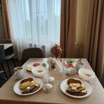 Жили на первом этаже, ничего не могу сказать об интерьере, мне это было не важно и я забегала в номер только переодется и ночь переспать!)))) Самое главное что был душ, холодильник и чайник. При необходимости можно что то приготовить, плита имеется.