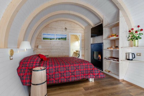 Здесь созданы все условия для комфортного проживания — есть холодильник, телевизор, фен, отопление, терраса.