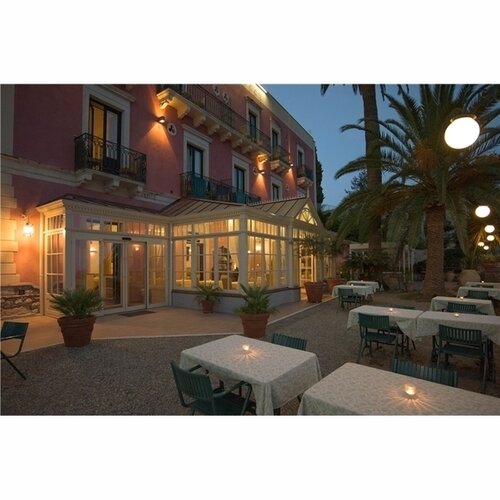 Прекрасное место для отдыха. Отель окружен замечательным садом, из которого есть прямой выход на главную улицу Таормины. Прямо из отеля открывается замечательный вид на Этну. А чуть ниже - уютный городской парк, который любил посещать Николай II. Отель расположен довольно высоко и до моря придется идти минут 45, номесть городской шатл, который ходит довольно регулярно