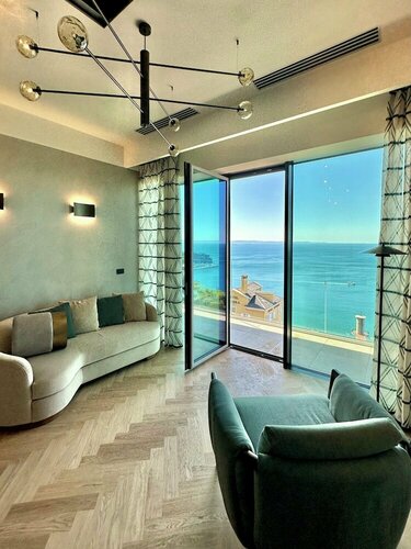 Много раз проезжал Триест по автостраде, переезжая из Италии в Хорватию или обратно, видел сверху порт, промышленные постройки и не подозревал, и даже не мог представить, что на побережье на подъезде к Триесту (со стороны Италии) существует курортная зона очень высокого уровня. Апартаменты, в которых жили мы, - современная постройка, в которой великолепно практически всё: от технического оснащения номера и здания до внутренних интерьеров и дизайна помещений. Обращённые к морю стены спальни и гостинной, - огромные панорамные окна, а полностью стеклянный бортик балкона не даёт укрыться ни одной детали из прекрасного вида на чистое синее море и изумрудную зелень побережья. Если добавить к сказанному великолепный завтрак, то останется только сказать, что лучшего места для отдыха и искать не надо.
